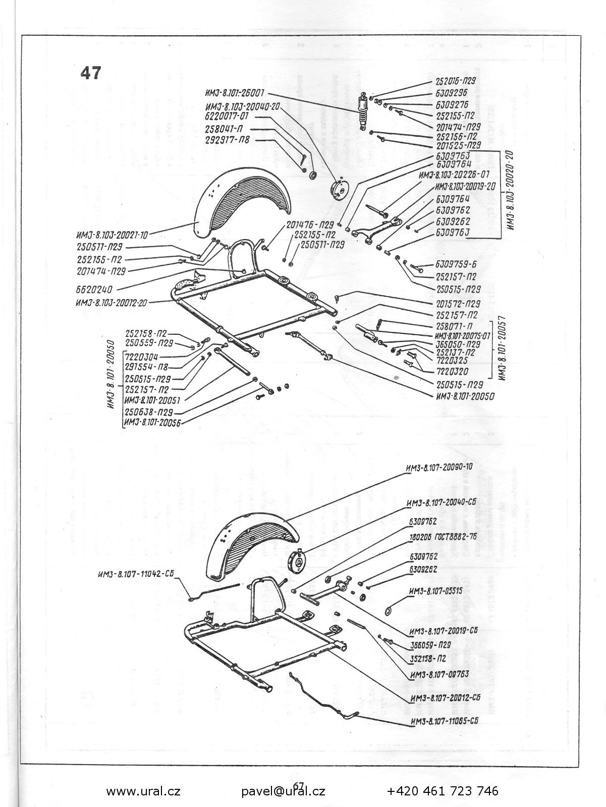 Motocykly Ural se sidecarem/sólo s motorem 650 OHV. Modely IMZ-8.103-10, IMZ-8.103-40, IMZ-8.123-10, IMZ-8.107.